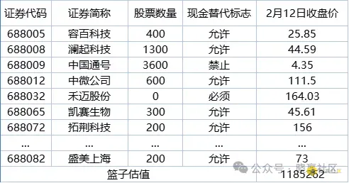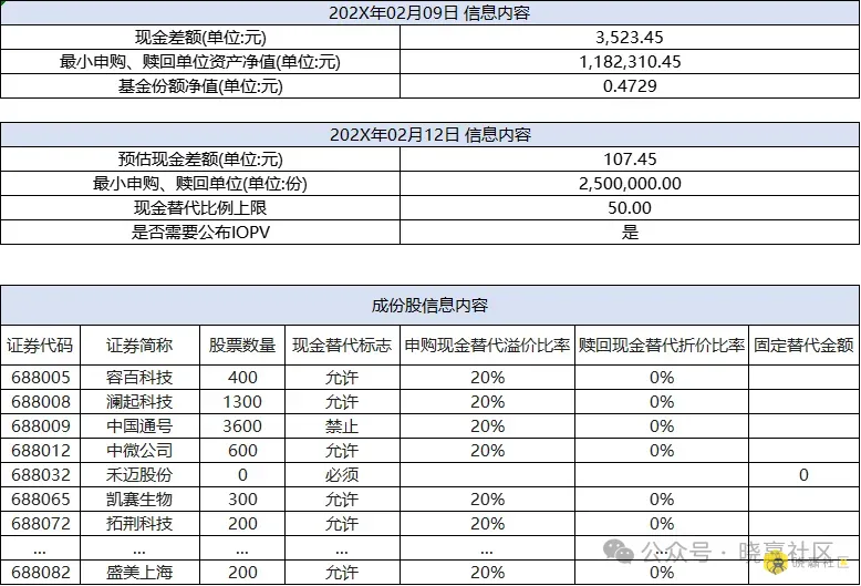 某上证科创50ETF(以下简称A基金)2月12日的PCF清单: